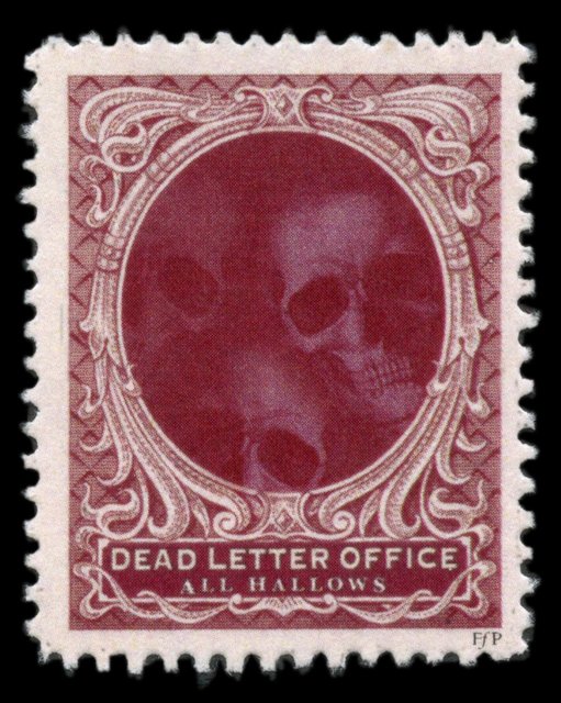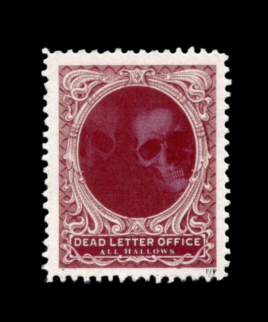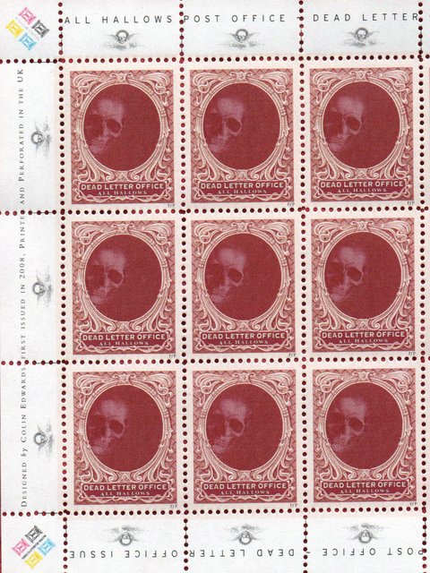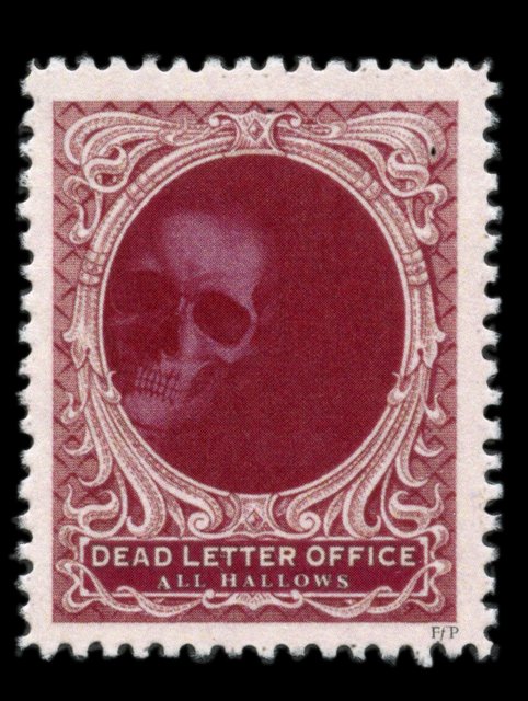 One of my favourite stamps from the All Hallows Post Office is the Red Dead Letter Office stamp. It was available from the FarFetchedPhilately Etsy shop in June 2020 in sheets of 12 stamps. The central image has a varnish/glaze over it suggesting that you are lookng into a mirror and, instead of your own reflection, you see a skull looking back at you. and, if you have one of these sheets, you will know that it was fairly easy to spot the Variant...