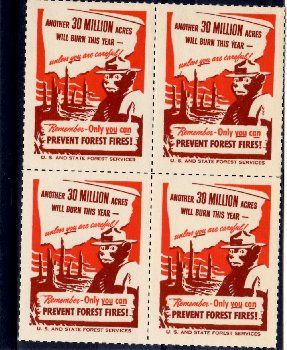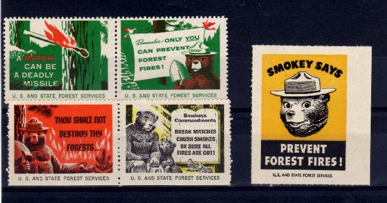 I was wondering why the kid in the bottom middle stamp was smiling so hard at the bear until I noticed the plant he was standing in front of..... I guess Smokie just saved the old plantation!